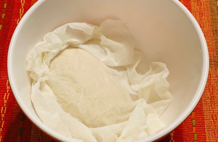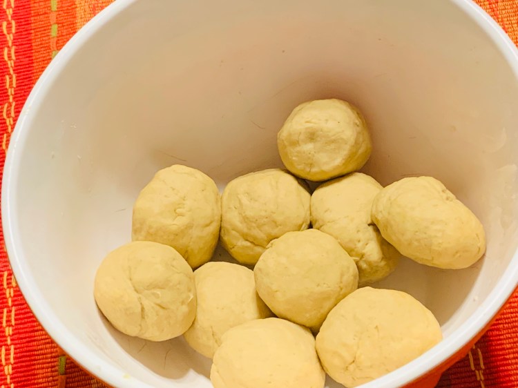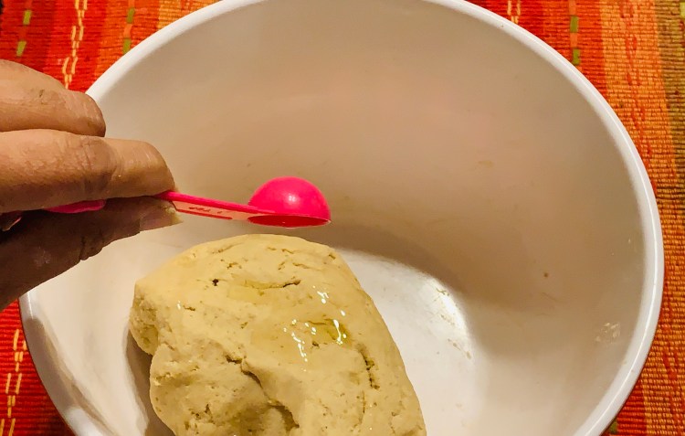 - Roll the rolling pin again so that the garlic and sesame seeds will stick to the dough