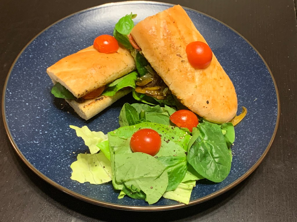 - Add cherry tomatoes and close the sandwich