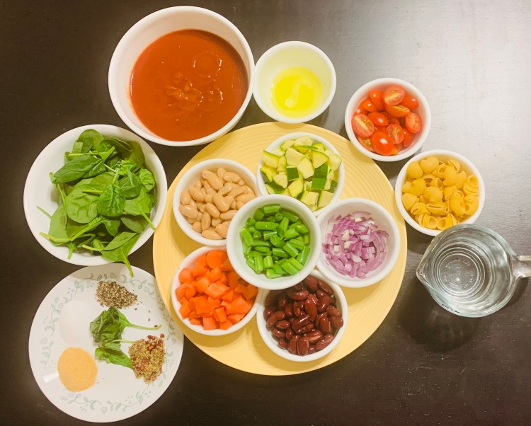 Minestrone Soup is a Wholesome dish that consists of beans as a source of protein, vegetables as a source of vitamins and fibers, and Pasta as a source of carbohydrates. The major ingredient of the soup is Tomato, which makes the soup rich in vitamin C and a source of Lycopene- an anti-oxidant. This is one of my favorite one-pot meals. This soup is flavored with Italian spices that are easily available in the pantry. This soup takes only a few minutes of preparation and a few minutes of cooking. You can serve it with Sourdough or Italian bread, or you can have it as it is.