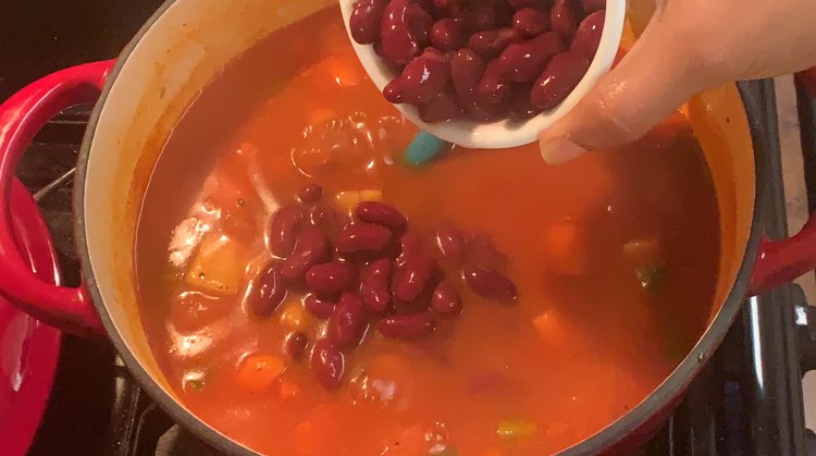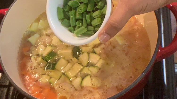 - Add the beans, baby spinach and and basil leaves. I have used canned beans. If you are using soaked beans, cook them separately before using in soup. You can use the beans of your choice
