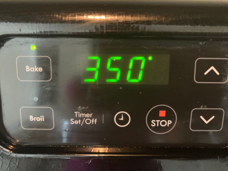 - Pre-heat the oven at 350-degree Fahrenheit or 180 Celsius