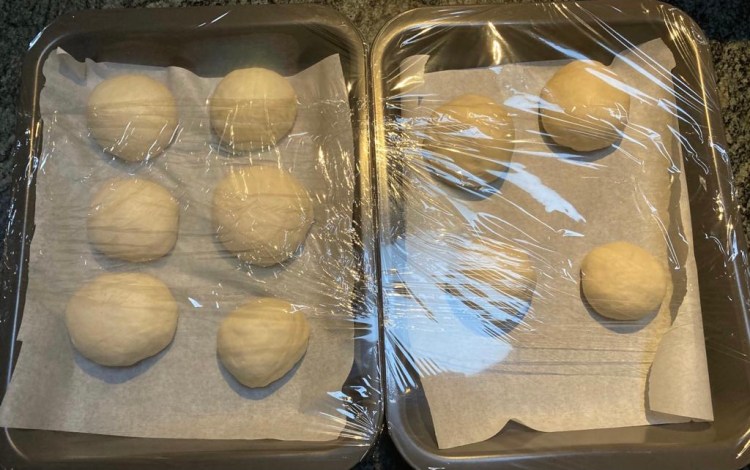 - Place the balls, leaving some distance between two balls in such a way to prevent the dough balls from sticking to each other