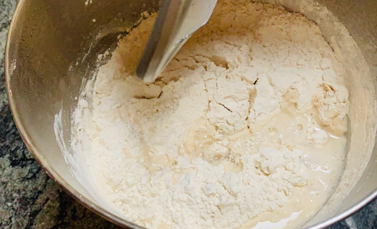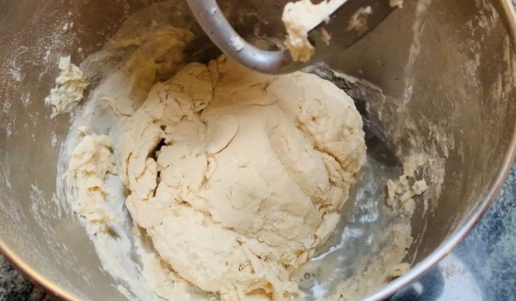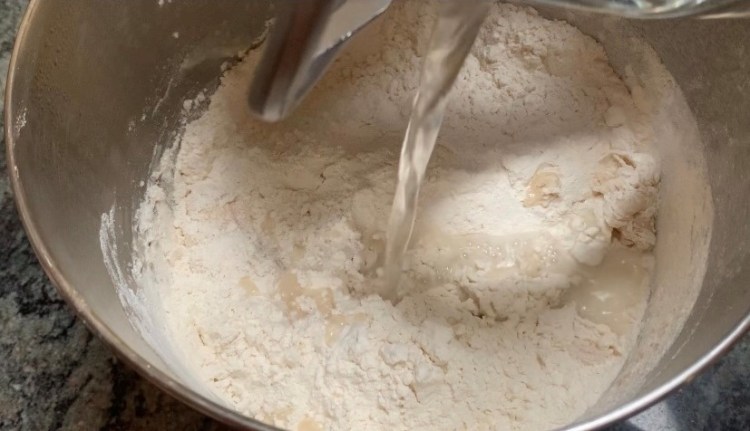 - On a low-speed, with a bread hook attachment, mix all ingredients Add ½ cup of water and mix again