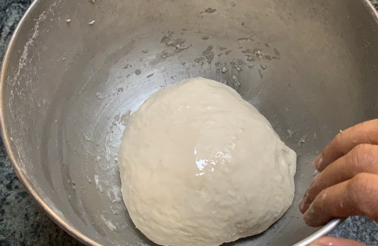 - Knead the dough by stretching and folding the dough with the base of your palm