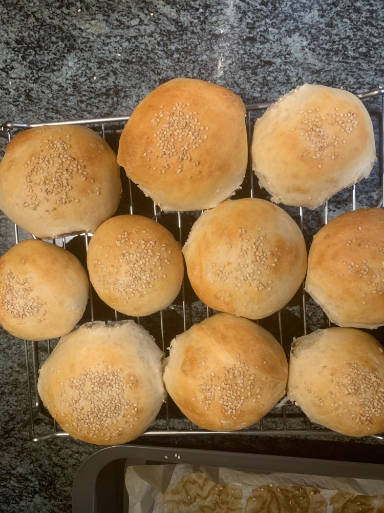 Kids love eating burgers at fast-food restaurants. A burger can be nutritious and flavorful, if we make it at home. We can make it healthier by making a protein-rich vegan patty, adding spreads such as hummus or guacamole, or by spreading fresh green mint chutney and adding lots of vegetables. Nothing like a burger bun baked at home. I started baking burger buns when we moved to the united states. I didn’t like the store-bought buns with a sweet taste. With the following recipe, you can easily bake the buns at home. These buns are healthier and much tastier than the store-bought buns. There are no preservatives or chemicals added. You will love the aroma of these freshly baked buns.
