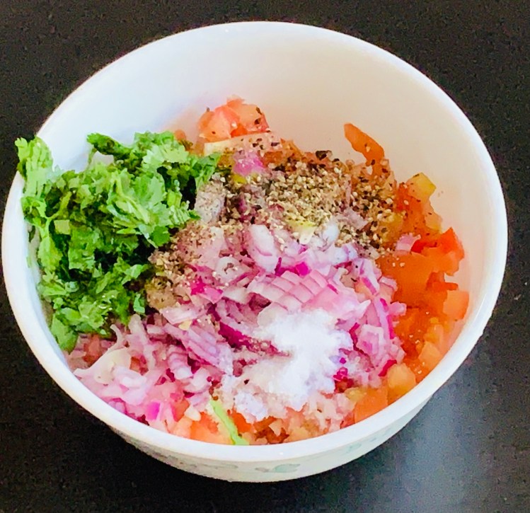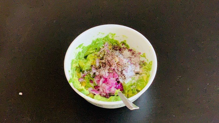 - Mash Avocados and add ½ Cup of finely chopped Onions