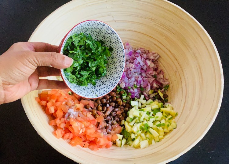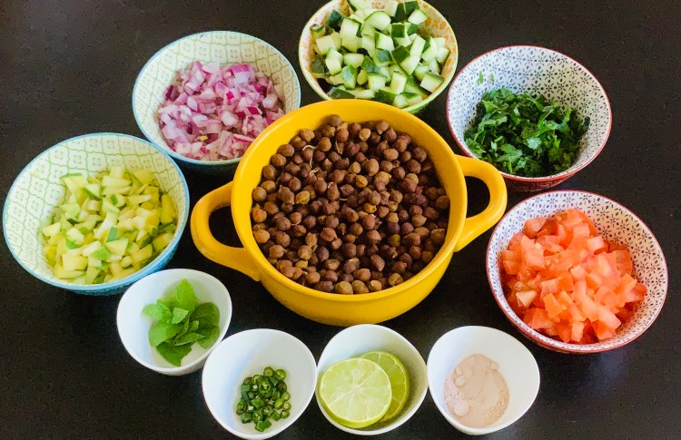 Black Chana is also known as kala Chana. Black Chana is a healthy source of plant-based protein. It has low glycemic index and hence controls blood sugar levels. it has high fiber content. Black Chana is rich in Folic acid and vitamin B12. This tangy and yummy salad is the best salad recipe to enjoy anytime of the day. Just mix the ingredients and enjoy!!
