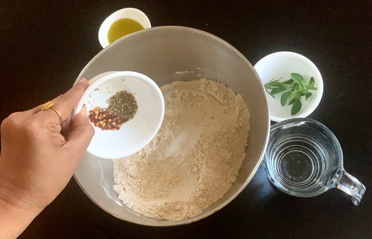 - Add salt, chili flakes and Italian seasoning