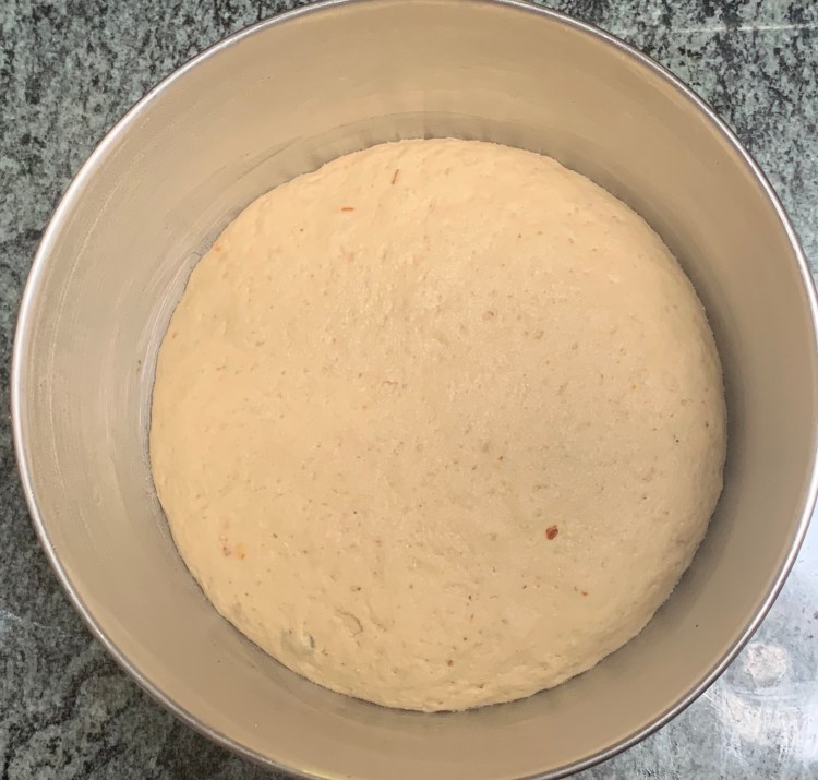 - Punch the fermented dough gently