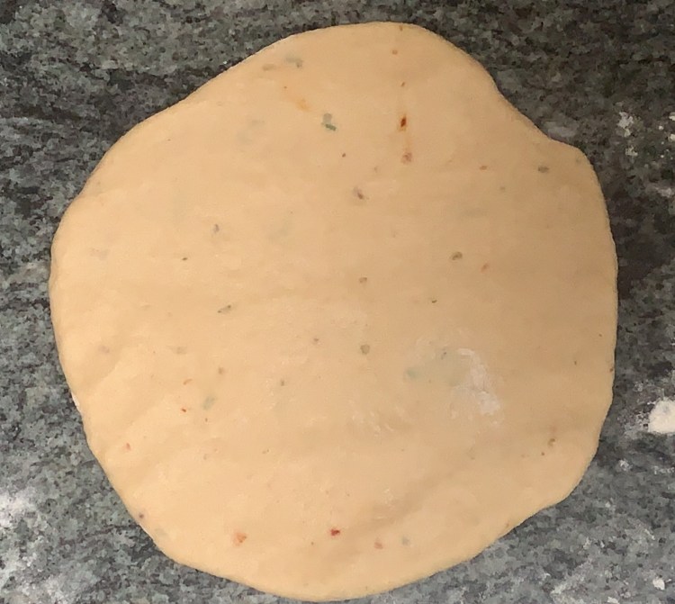 - Stuff the vegetable mixture on one side of circle and cover the other side of circle to make a semi-circle